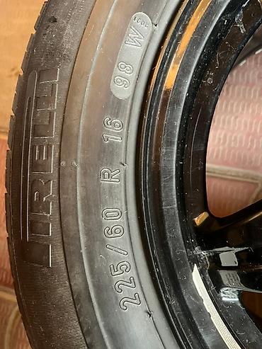 Запасное колесо Pirelli с черным пятилучевым диском. Шина имеет размер 225/60 R16. Идеально подходит для использования в качестве "докатки" или полноценной запаски. Черный диск с пятью отверстиями для крепления обеспечивает надежную фиксацию. Удобное и практичное решение для автовладельцев. Запаска от Mercedes Benz сост отл