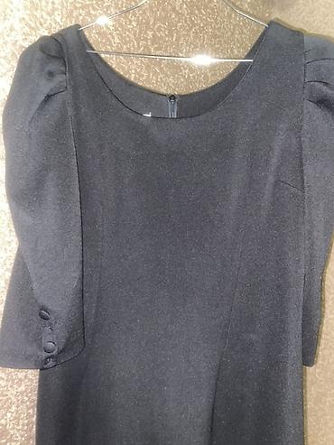 Черное платье миди с лаконичным кроем. - Материал: плотная костюмная