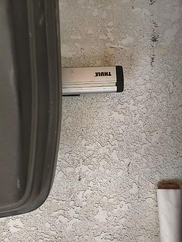 - Установлен на алюминиевых аэродинамических поперечинах Thule (видны заглушки и профиль крыла), подходят для крепления автобокса через стандартные скобы/быстрые фиксаторы.