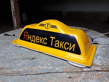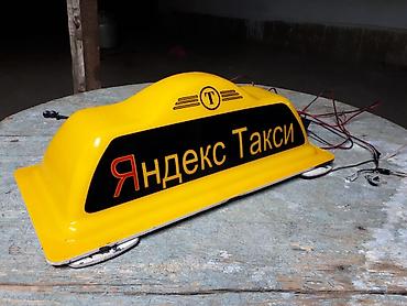 Плафоны/шашки на крышу такси. - Два аэродинамических плафона с рекламной наклейкой такси: - Желтый «SMS TAXI» с обозначениями 1236 и 1424, сайт: www.smstaxi.kg. - Белый/серый «Jorgo TAXI» с ло...