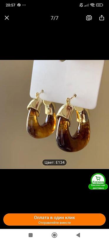 - Материалы: ювелирный сплав с глянцевым золотистым покрытием, акрил/смола с мраморным переливом.