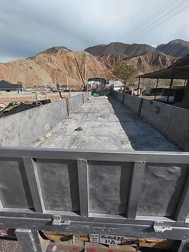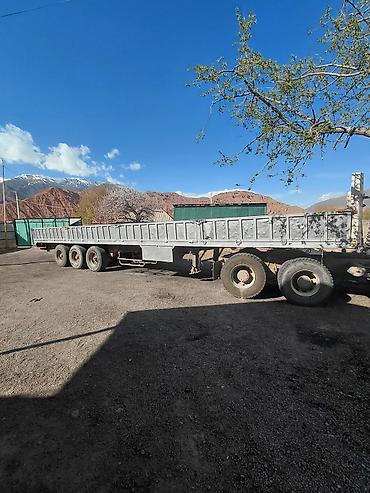 2025 года выпуска. Платформа-длина 13 метров, ширина 2,55 метра, 12 колес, может перевозить 45 тонн груза. Без таможенного оформления. Доставка возможна в Ош или Бишкек. Цена — 11 500 долларов США.