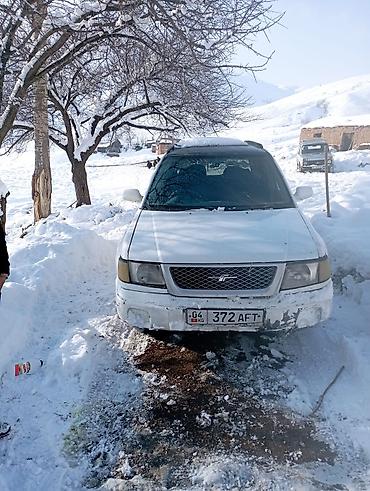Полноценный компактный кроссовер белого цвета с правым рулем. Просторный 5‑дверный кузов, рейлинги на крыше. Построен на базе Subaru Forester первого поколения: высокий клиренс, короткие свесы, отлично подходит для зимних дорог и проселка.