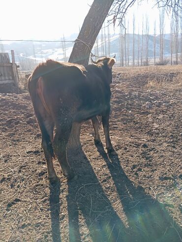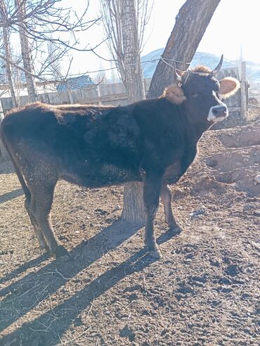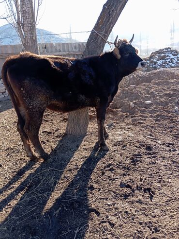 Бык молодняк (кросс мясо-молочного направления) - Пол: бык - Возраст: ориентировочно 10–16 месяцев (по габаритам и рогам судя) - Окрас: темно-бурый с более светлым хребтом, белые отметины на ногах...
