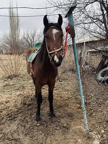 Срочно срочно жашы 3 жаш эркек малга улака универсал басыгы бар женил оозу жумшак Кеми бар ат ысык атада Лошадь под верховую езду - Масть: гнедая, с белой отметиной на морде и белой «чулочной» отм...
