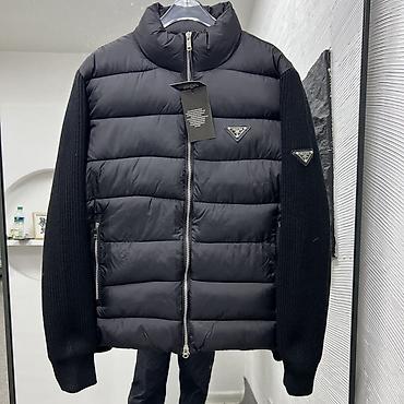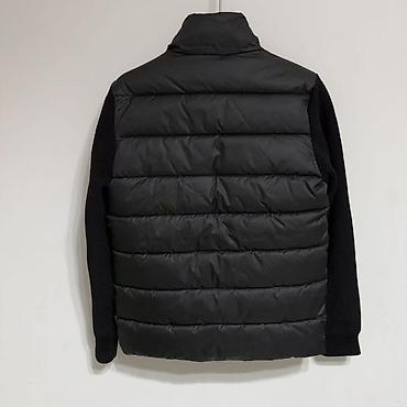 - Комбинированный дизайн: стеганый утеплённый корпус и вязаные рукава крупной вязки.