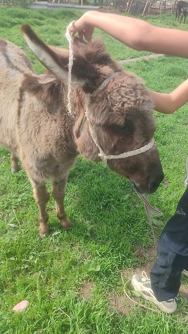 - Вид: домашний осёл, масть серая, густая шерсть.