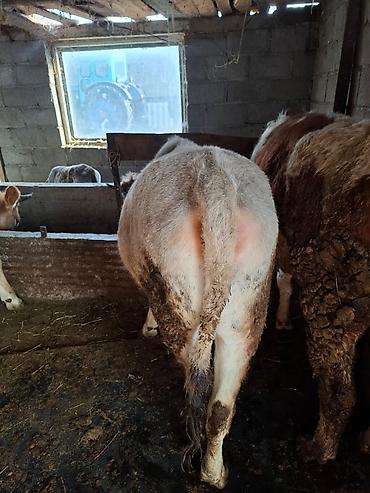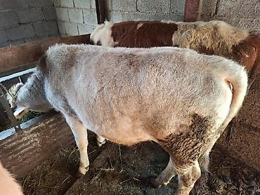 Бычок (молодняк крупного рогатого скота) - Масть пестрая, бело-рыжая. - Возраст визуально — телёнок/подросток, крепкое телосложение. - Содержание на привязи, в крытом хлеву. - Спокойный характер, ...