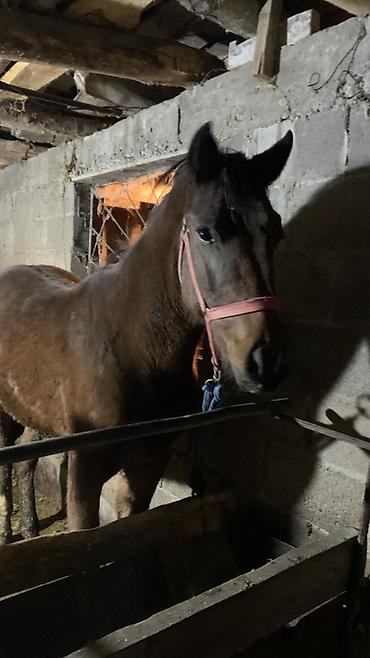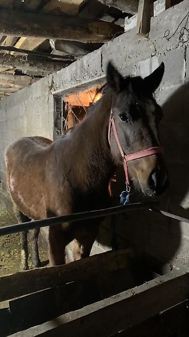 Лошадь, масть гнедая, с отметиной на лбу. На фото — в стойле, в недоуздке. Корпус крепкий, гармоничный, шея средней длины, сухая голова, выразительные глаза, аккуратные уши. Конечности прямые, копыта ухоженные. Подходит для хозяйственных работ, прогулочного и упряжного использования, возможна работа под седлом. Спокойный темперамент, ориентирована на человека. Ест сено и зерновые корма, содержится в стойле, приучена к привязи и уходовым процедурам (чистка, надевание недоуздка). Отличный вариант для частного подворья или конных прогулок.