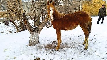 Тай откорм да #откорм #жеребенокМолодой рыжий жеребёнок с белой проточиной на морде и светлыми отметинами на ногах. Небольшая звезда на лбу, длинная густая грива и хвост. Статный, высоконогий, с правильным корпусом и выразительной головой. Спокойно стоит на привязи, любопытный, контактный, хорошо реагирует на человека. Подходит для дальнейшего выращивания под верховую езду или лёгкую упряжь. Зимний шерстный покров густой. На фото видно естественное содержание во дворе в зимний период.