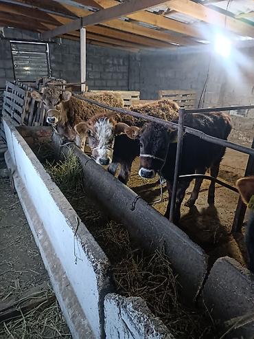 Ургачы торпоктор 5 айлыктар 50 сурап жатам рогатого скота (несколько голов), содержатся в тёплом сарае на привязи.