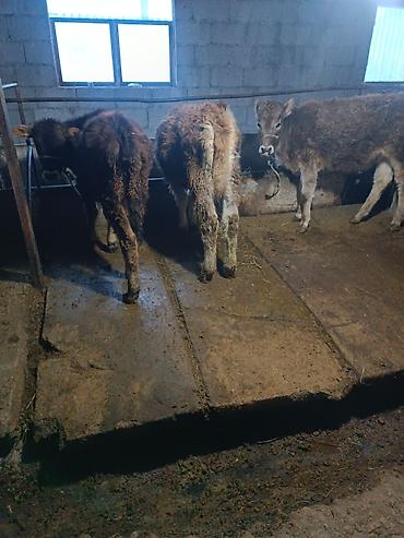 - Возраст — примерно осенний/зимний отёл (молодые телята). На фото видно разную масть: бурые, тёмно‑бурые, одно пёстрое телёнок с белой меткой на голове.