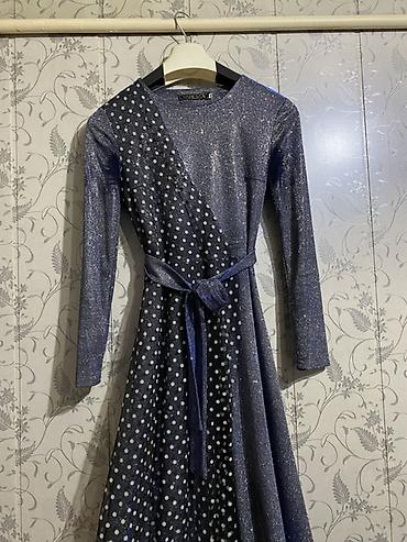 4) Темно-синее блестящее платье миди/макси с длинным рукавом.