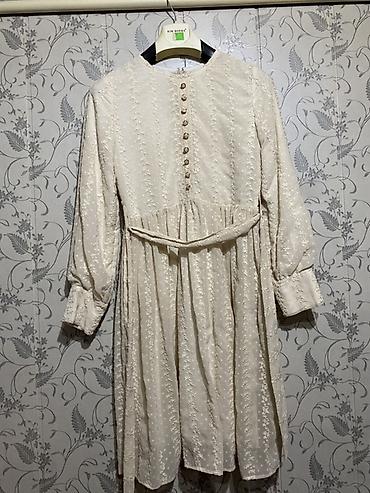 - Акцент на талии за счёт расшитого пояса, мягкие складки от линии бёдер.