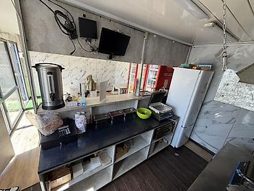 - Оборудование на месте: профессиональный шаурма‑гриль, вытяжной зонт, рабочие столы, раковина, термос/самовар для горячих напитков, холодильники для напитков, кассовая зона.