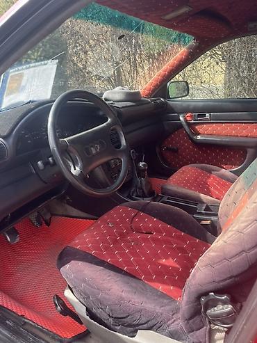 Audi 100 C4, седан, темно-бордовый цвет. Основные характеристики: - Кузов: 4-дверный седан, фаркоп сзади. - Трансмиссия: механическая коробка передач. - Салон: тканевые чехлы на сиденьях, передни...