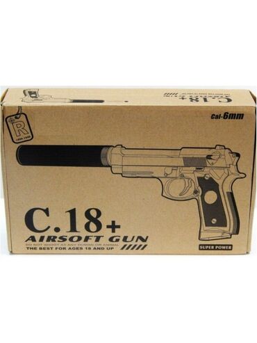 Пистолет с глушителем Airsoft Gun C.18+ станет отличным подарок для любого мальчика. Ведь ребятам всегда нравилось и нравится играть в войнушки и подобные игры. Ребенок очень обрадуется , как только у него в руках окажется пистолет, который выглядит почти как настоящий! Airsoft Gun изготовлен из нелегкого металла, который создаст ощущение, будто Вы держите в руках самое настоящее оружие! И даже взрослые будут поражены такой игрушкой, ведь она настолько правдоподобна! Зарядка происходит как у самого настоящего оружия! Пистолет станет отличной подготовкой к таким увлекательным играм, как пейнтбол или страйкбол! - Корпус из металлической (вороненой) стали - Передвижная затворная рама - Вкручивающийся глушитель - Стреляет пластиковыми пульками диаметром 6 мм - Удобная рукоятка - Комплектация: - Пистолет пневматический металлический; Съемный глушитель; Упаковка пулек 6мм.