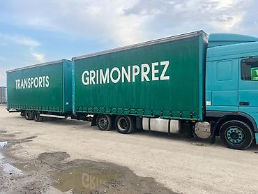 - Цвет и брендирование тентов: зеленые тенты с крупной надписью “TRANSPORTS GRIMONPREZ”