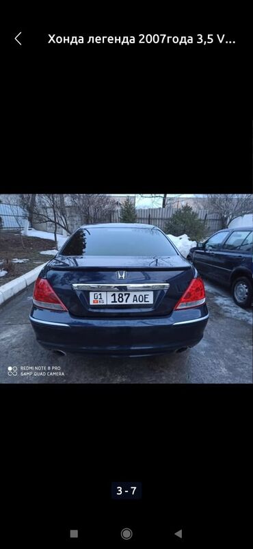 Honda Legend седан, левый руль. Номерные знаки KG. Кузов и экстерьер: - Темно-синий цвет - Литые диски - Противотуманные фары - Хромированные элементы - Парковочные датчики (по бамперу видны сенсо...