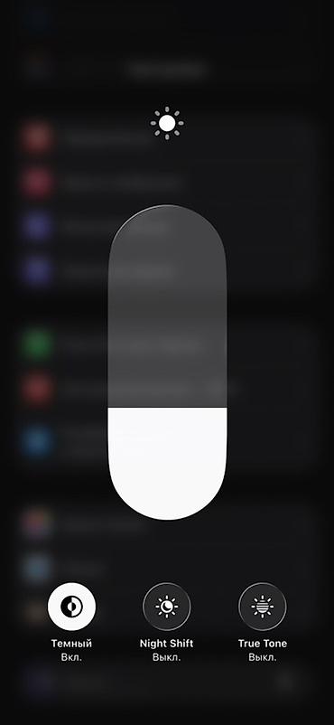 - Экран: поддержка режимов Темный, Night Shift и True Tone (на скриншоте — выключены)