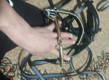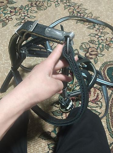 - Оснащение: металлическая фурнитура (пряжки, кольца, полукольца), мундштук/трензель из светлого металла, карабины.