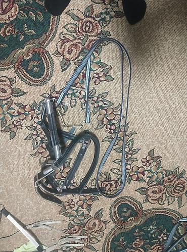 - Поводья: плетёные/текстильные, двуслойные, серо‑синие, с кожаными креплениями к трензелю.