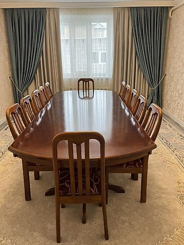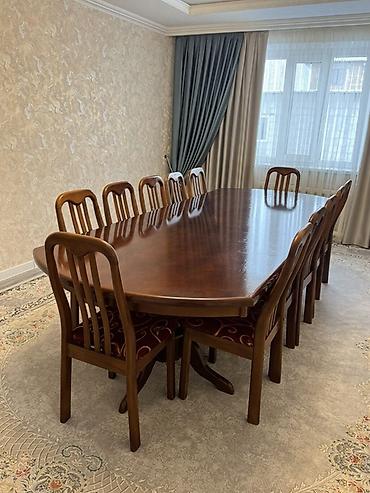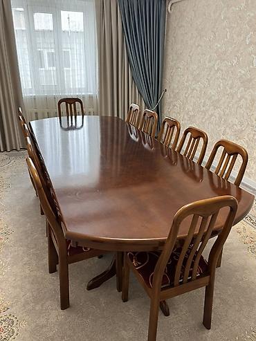 СРОЧНО ПРОДАЮ СТОЛ! Со стуляьми Длина 2,5м в раскладком виде ширина 1 м Обеденная группа: раскладной стол + 8 стульев - Материал: массив/шпон, натуральное дерева Кара Жыгач (лакированная поверх...