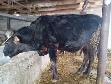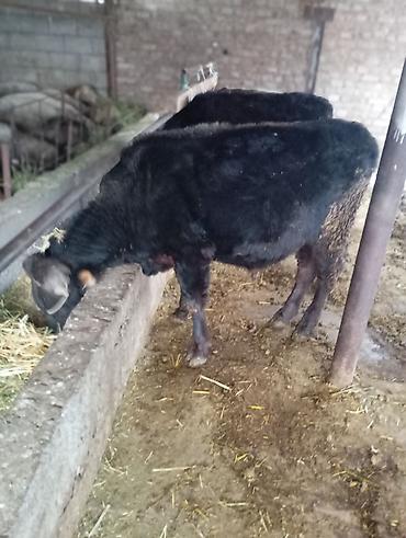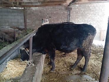 Бык-подросток черной масти, с биркой в ухе. Содержится в стойле, на грубом и сочном корме. Плотный костяк, развитая мускулатура, прямой постав ног. Подходит для откорма на мясо или для разведения. ...