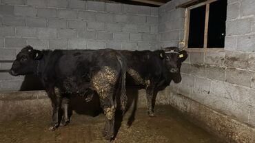 Быки молодняка, черной масти, содержатся в отдельном стойле. На ушах установлены бирки-идентификаторы. Животные рогатые, на фото видно крепкий костяк и развитую мускулатуру. Подойдут для откорма или племенного разведения. Спокойные, привыкшие к привязному содержанию.