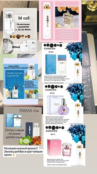Парфюмерия Essens в наличии. А так же по предзаказу