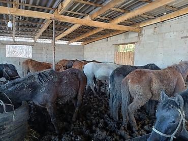 На продажу пара молодых лошадей (жеребята/подростки). Характеристики: - Возраст: примерно 1–2 года (по комплекции и росту — молодые, не объезженные). - Масть: рыжая и гнедая. - Тип: сельскохозяйст...