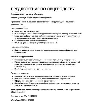 Ищу партнера-инвестора для совместного разведения овец в Чуйской области.