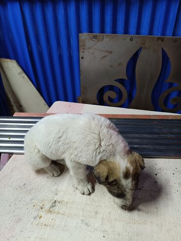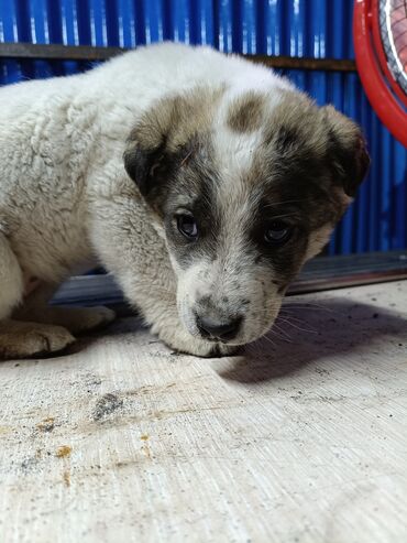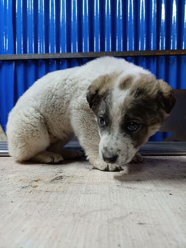 - Окрас: белый с серо‑коричневыми пятнами, светлая мордочка с крапом.