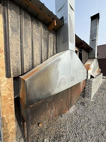 - Корпус из толстой стали с жаропрочным кожухом и вытяжным зонтом по всей длине.