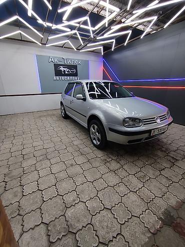 Volkswagen Golf IV, хэтчбек, зелёный цвет. Киргизские номера (01 KG 494 ACG). Кузов и экстерьер: - Компактный 5‑дверный хэтчбек - Заводская решётка радиатора с эмблемой VW - Передние галогенные фа...