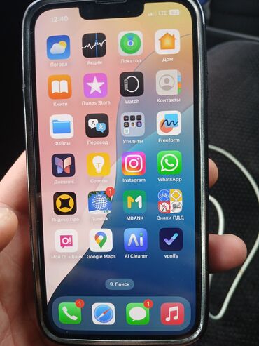 - На экране установлены стандартные приложения Apple и популярные сервисы (Instagram, WhatsApp, Google Maps и др.).