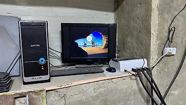 - Управление от ПК: системный блок SUNTER, монитор Samsung, клавиатура и мышь. Подключение к контроллеру станка выполнено, на экране — рабочий стол Windows.