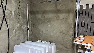 - Портальная рама на алюминиевом профиле с натяжением нихромовой проволоки для терморезки. Рабочая зона видна на фото — подходит для резки блоков большой высоты и длины, форм «ласточкин хвост», пазов, кирпичной раскладки, декоративных элементов, упаковочных вставок.