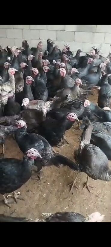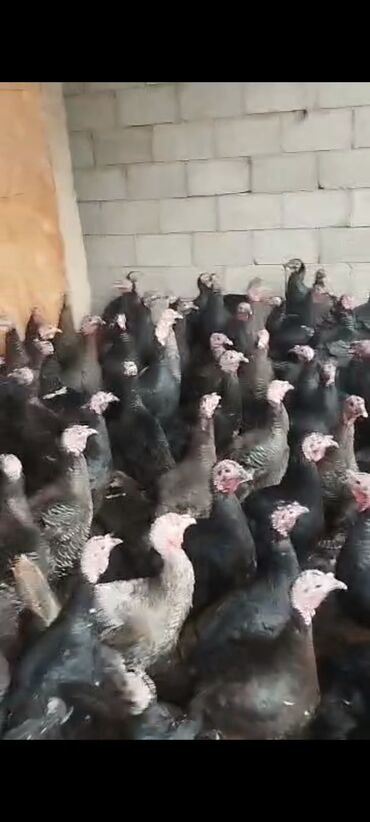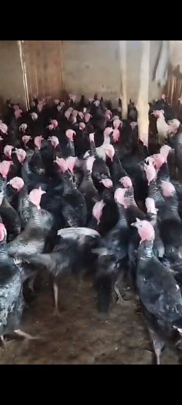- Крупная партия индюков темного (черного/серого) окраса, с розовыми головами и бородками.