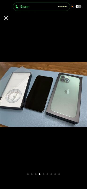IPhone 13 Pro, Б/у, 256 ГБ, Alpine Green, Защитное стекло, Кабель, Коробка, 98 %