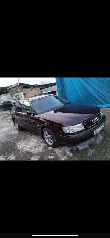 Audi 100 Avant (универсал), темно-бордовый цвет. Полноразмерный 5‑дверный кузов с практичным багажным отсеком и рейлингами на крыше.