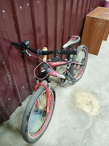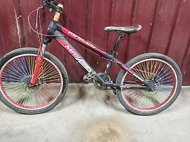 - Колёса: 24–26" (визуально ближе к 26"), разноцветные спицы, покрышки с выраженным протектором.