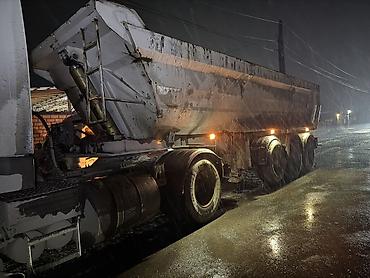 - Совместимость: стандартная сцепка с седельным тягачом (на фото — с тягачом Volvo FH 420), подходит для работы в карьерах, на стройплощадках и при перевозке ПГС, щебня, песка, грунта, строительных отходов