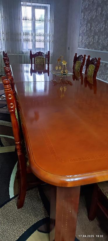 Продаю в Кара-Балте овальный стол с шестью стульями, размер: 3х90. Сделан из ореха, состояние нового