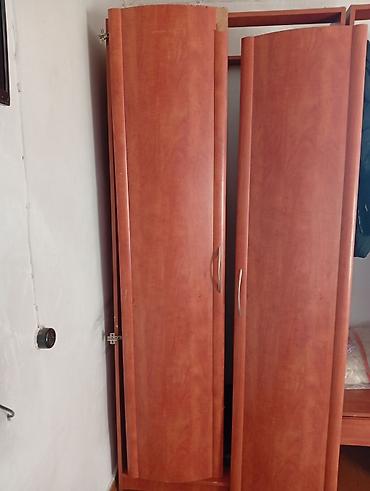 - Двухстворчатый/трёхстворчатый шкаф с глухими дверцами, вертикальными ручками и петлями на доводчиках. Корпус и фасады с радиусными элементами.
