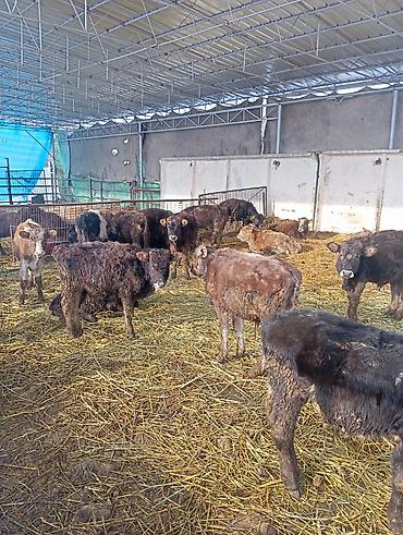 Мамалактар сатылат 6 баш оптом баасы 32000ден 3ургаачы 3 эркек - На фото – группа телят разного окраса (черные, черно-белые, светло-рыжие). - Содержатся в загоне и в коровнике на подстилке из сол...