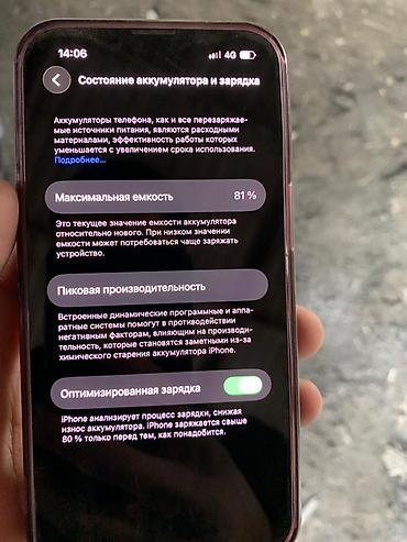 - Аккумулятор: максимальная ёмкость 81%, оптимизированная зарядка включена