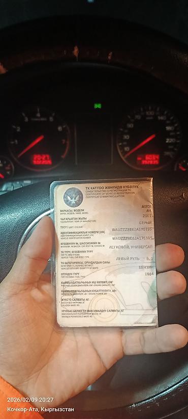 Audi A4 универсал, 2001 г.в., левый руль, серый цвет. Топливо: бензин. Объем двигателя: 1984 см³. Мощность: 96 кВт. Тип кузова: легковой, универсал. VIN: WAUZZZ8E21A170195. Номер кузова/шасси: WAUZZZ8E21A170195. Категория ТС: B.