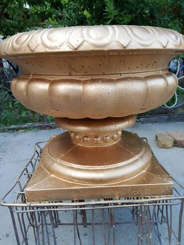 Классическая уличная ваза-кашпо на постаменте. Размер: Диаметр 70 см, высота 50 см, основание 34×34 см, Вес - 90 кг. - Материал: литой бетон. - Форма: широкая чаша на массивной ножке с квадратным ...