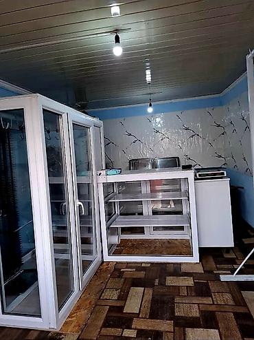 - Рядом комплектная прилавочная витрина с раздвижными стеклянными фасадами и тремя полками для выкладки, единый белый корпус.